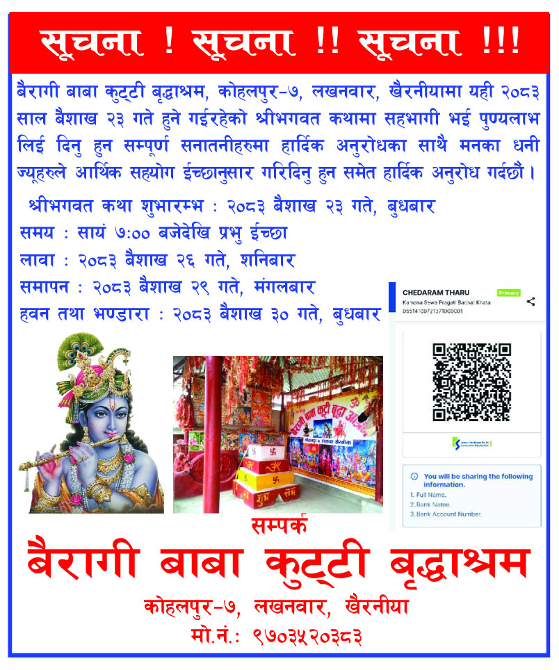नव वर्ष २०८३ को पावन अवसरमा बैशाख ११, १२ र १३ गते...