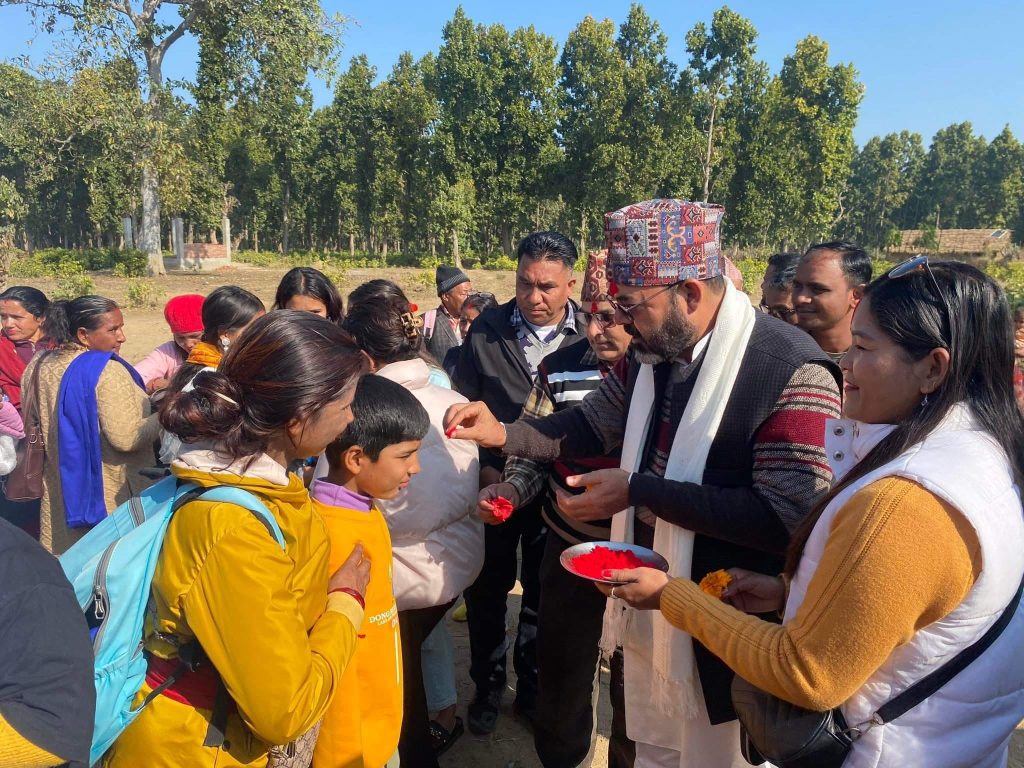 सोमबार सन्तानेश्वर महादेव मन्दिरको दशर्नको लागि गएका ६५ जना कोहलपुरका तिर्थयात्रीलाई स्वागत गरिएको हो ।