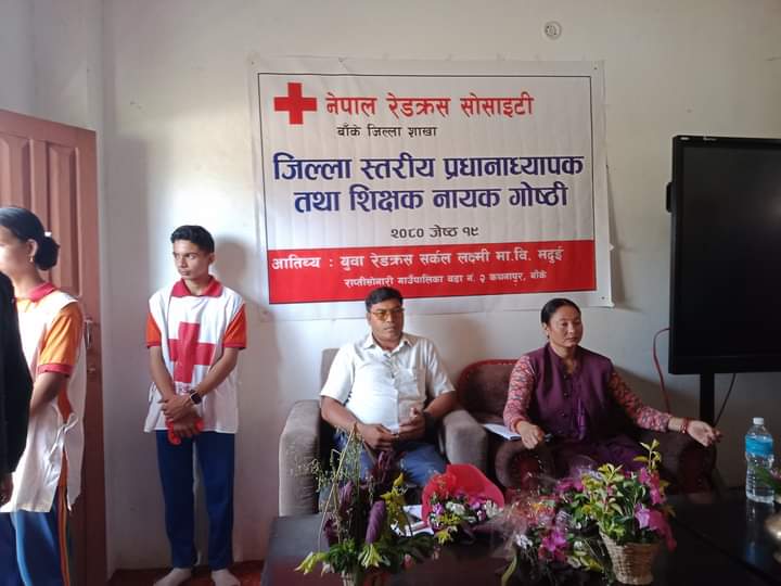 नेपालगन्ज जेष्ठ १९ – जिल्ला स्तरीय प्रधानाध्यापक तथा शिक्षक नायक गोष्ठी राप्तीसोनारीको मदुईमा सम्पन्न भएको छ । नेपाल रेडक्रस सोसाइटी बाँके जिल्ला शाखाको आयोजना तथा युवा रेडक्रस सर्कल लक्ष्मी मा.वि. मदुई राप्तीसोनारी २ कचनापुरको आतिथ्यमा उक्त गोष्ठी सम्पन्न भएको हो ।