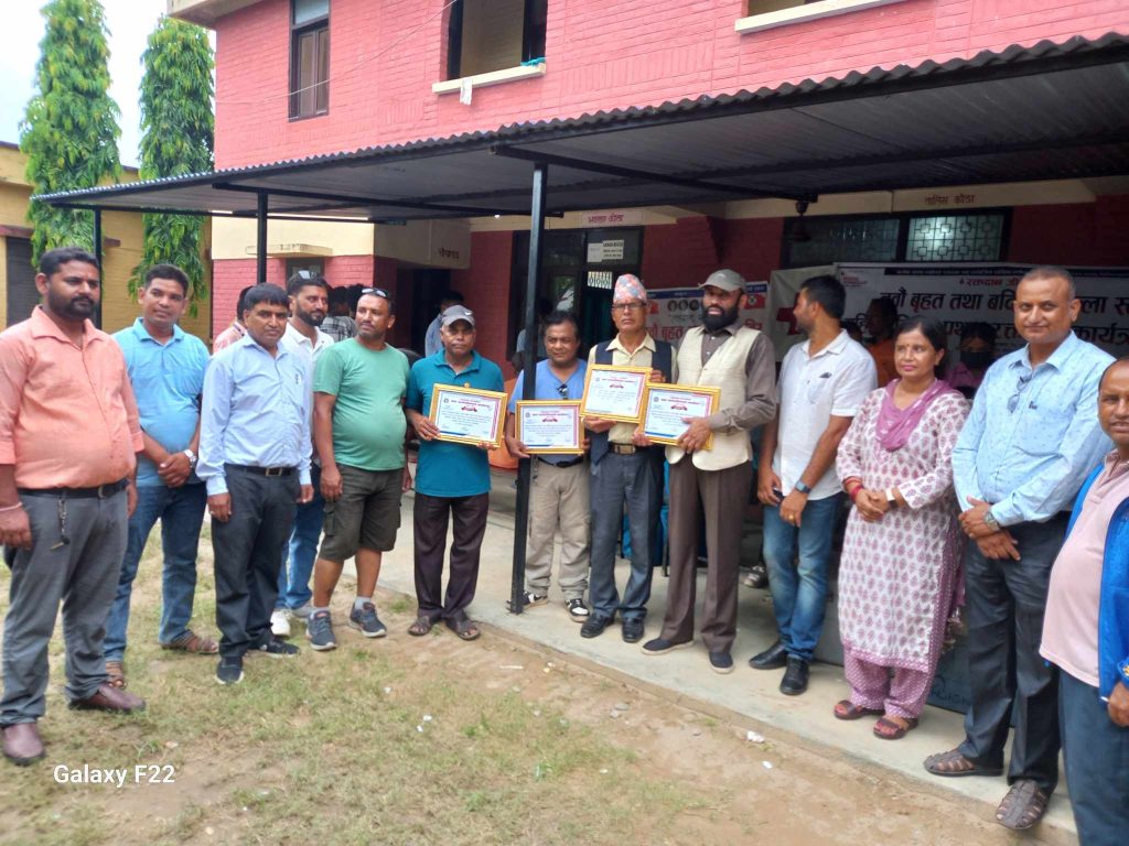 नेपालगन्ज, १९ श्रावण – नवौं बृहत तथा बर्दिया जिल्ला स्तरीय महिला बिशेष प्रथम रक्तदान कार्यक्रममा नेपाल स्वयंसेवी रक्तदाता समाजका केन्द्रिय अध्यक्ष प्रेमसागर कर्माचार्य सहित पाँच जनालाई बर्दियाको भुरी गाउँमा सम्मान गरिएको छ ।