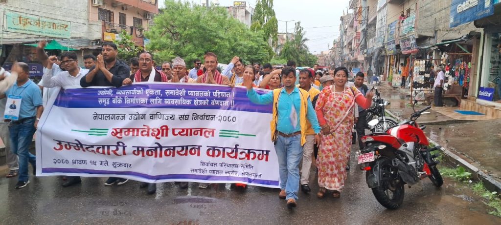 नेपालगन्ज, १९ श्रावण – नेपालगन्ज उद्योग वाणिज्य संघको निर्वाचनमा समावेशी प्यानलले टंकबहादुर धामीको नेतृत्वमा उम्मेदवारी दर्ता गरेको छ ।