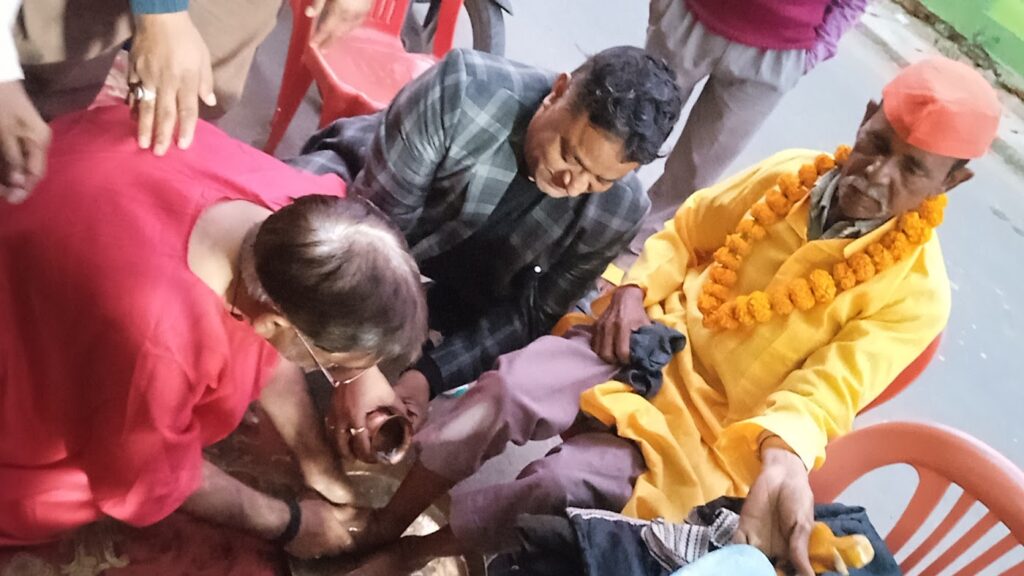 शनिवार दिन प्रेस स्वतन्त्रता सेनानी स्व. राम गोपाल वैश्यको छैठौं वार्षिक पुण्यतिथिको अवसरमा दलित वर्गका बाल्मीकी समुदायका ६७ वर्षीय वृद्ध मैकुलाल बाल्मीकीको खुट्टा धुवाई नयाँ वस्त्र पहिराई कदर सम्मान गरेको छ ।