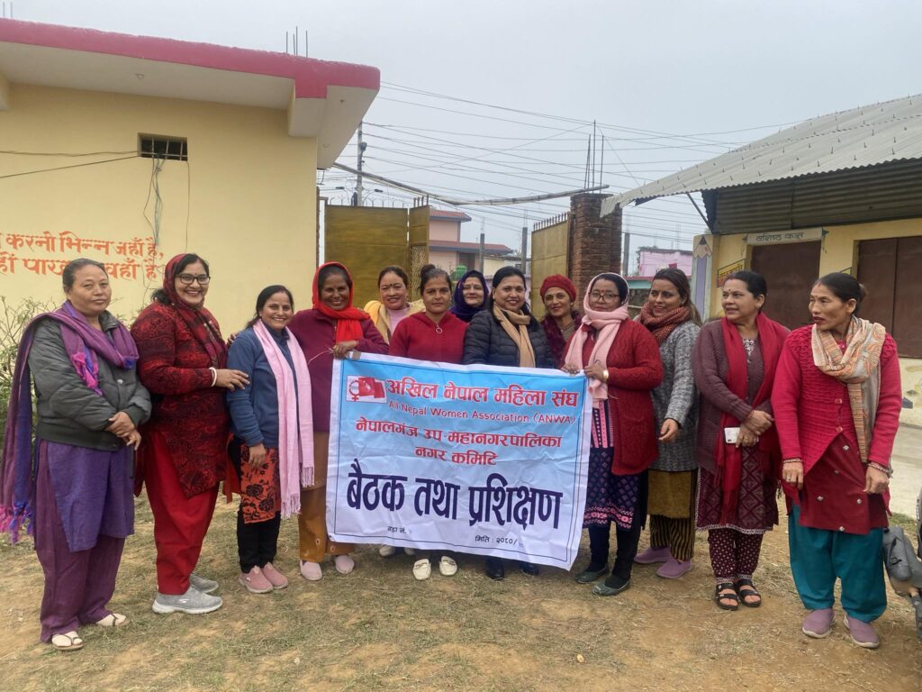 नेपालगन्ज, १५ पौष – राजनीतिमा महिलाको क्षमता अभिबृद्धि गर्ने उद्देश्यले अखिल नेपाल महिला संघ नगर कमिटीको आयोजनामा नेपालगन्ज उपमहानगरपालिका वडा नं. १ धम्बोजिमा बैठक तथा प्रशिक्षण कार्यक्रम सम्पन्न भयो ।