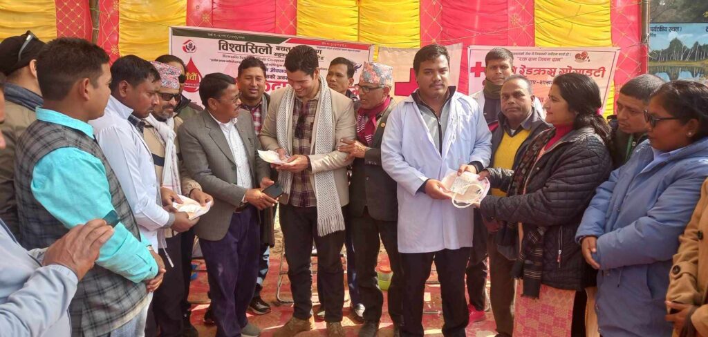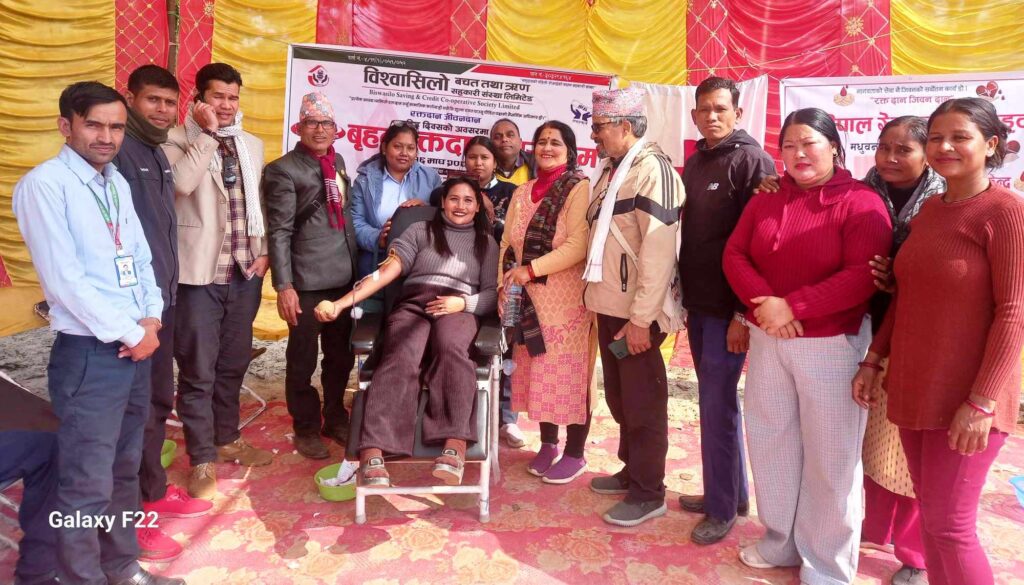 नेपालगन्ज, १८ माघ – शहिद दिवसको अवसरमा पाँचौ पटक वृहत रक्तदान कार्यक्रम बिश्वासिलो बचत तथा ऋण सहकारी संस्था लिमिटेड केन्द्रिय कार्यालय ठाकुरबाबा गाउँपालिका वार्ड नंं.८ मढेला “रक्तदान जीवनदान” भन्ने उद्देश्यका साथ आयोजित पाँचौ पटक वृहत रक्तदान कार्यक्रममा १० जना महिला जनाले ५८ जनाले माघ १६ गते मंगलवार रक्तदान गरेका छन् ।