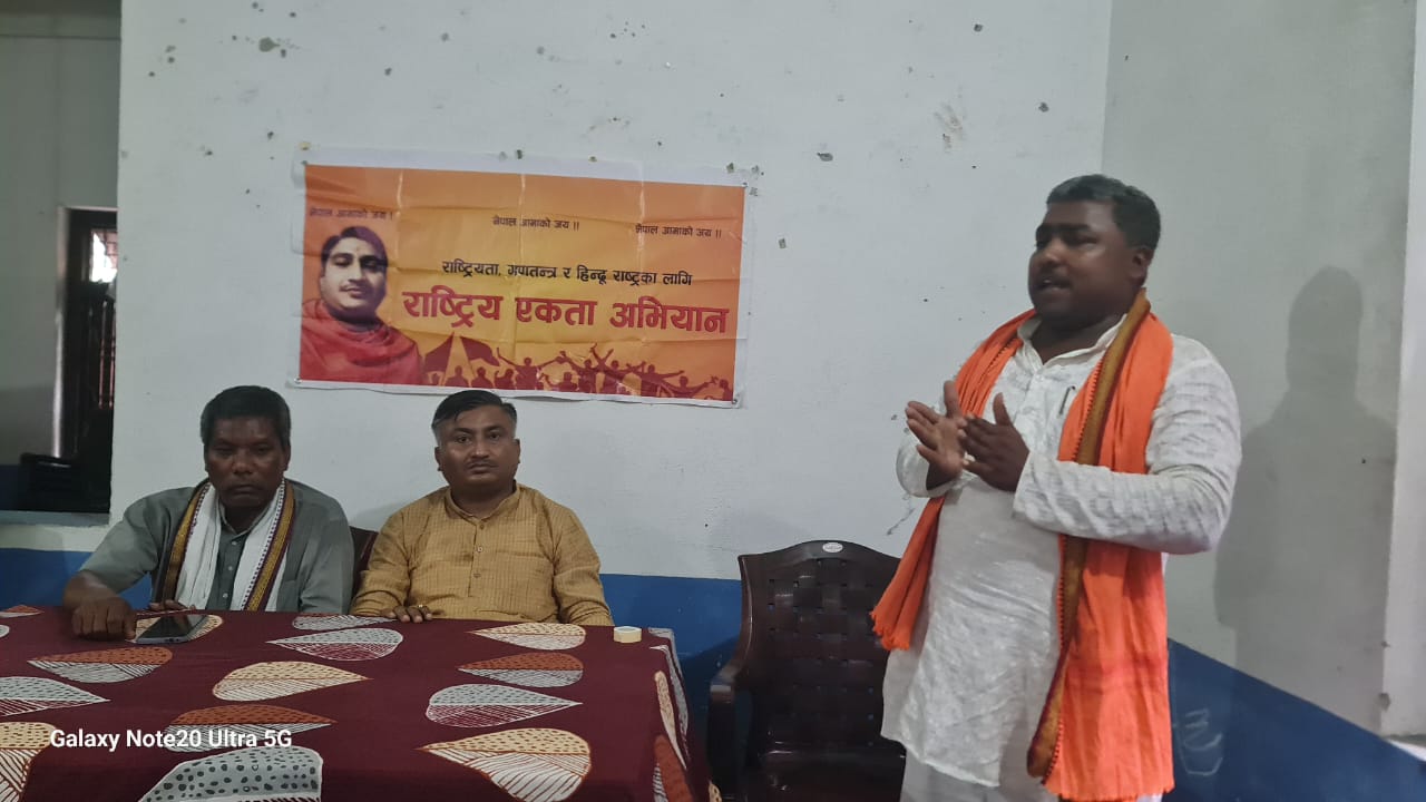 सप्तरी, २९ असार – सप्तरी जिल्ला बोदे बरसाई नगरपालिकामा संघीय हिन्दू गणतंत्र स्थापना गर्नका लागि राष्ट्रिय एकता अभियानद्वारा विशेष छलफल कार्यक्रम सम्पन्न गरिएको छ। कार्यक्रम समाजसेवी मोहित यादव को अध्यक्षतामा सम्पन्न भएको थियो।