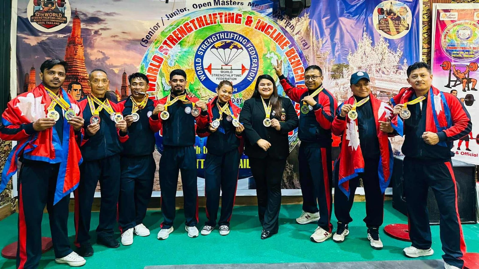 नेपालगन्ज, ४ श्रावण – १२औं बिश्व स्ट्रेन्थ लिफ्टिङ्ग एण्ड आई बि पि च्याम्पियनसिप (१६ देखी १९ जुलाई २०२५) थाईलेण्डको पटायामा नेपालबाट ९ जाना खेलाडिले विभिन्न तौल समुहमा भाग लिएकोमा नेपालले १४ पदक जित्दै टिम इभेन्टमा दोस्रो स्थान हासिल गरी देशको नाम उच्च गर्न सफल भएको छ ।