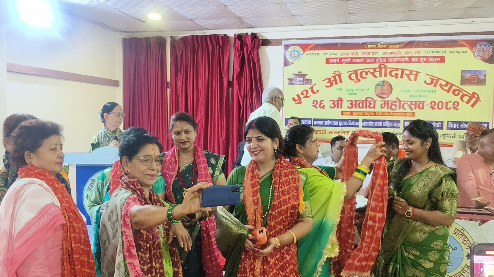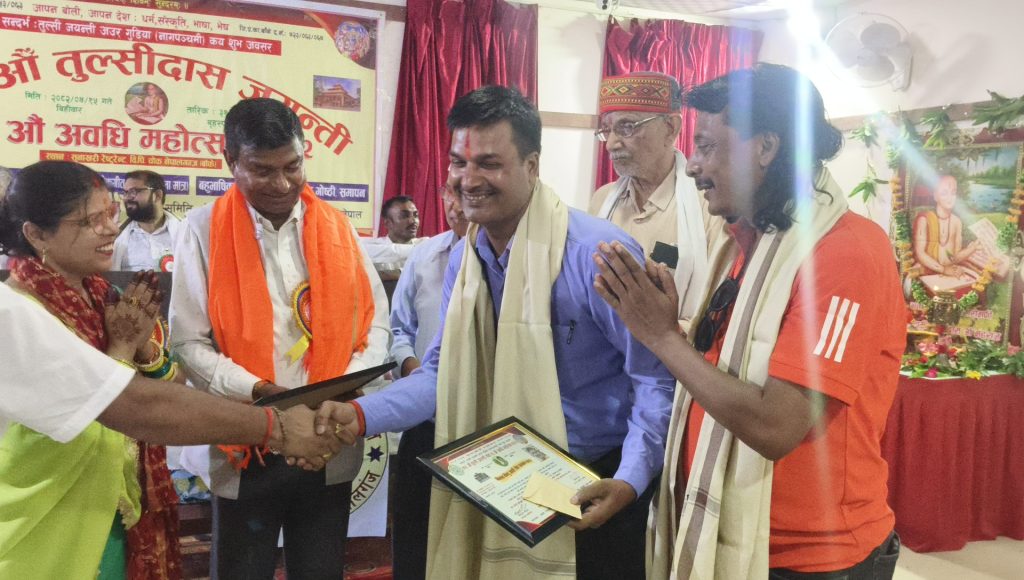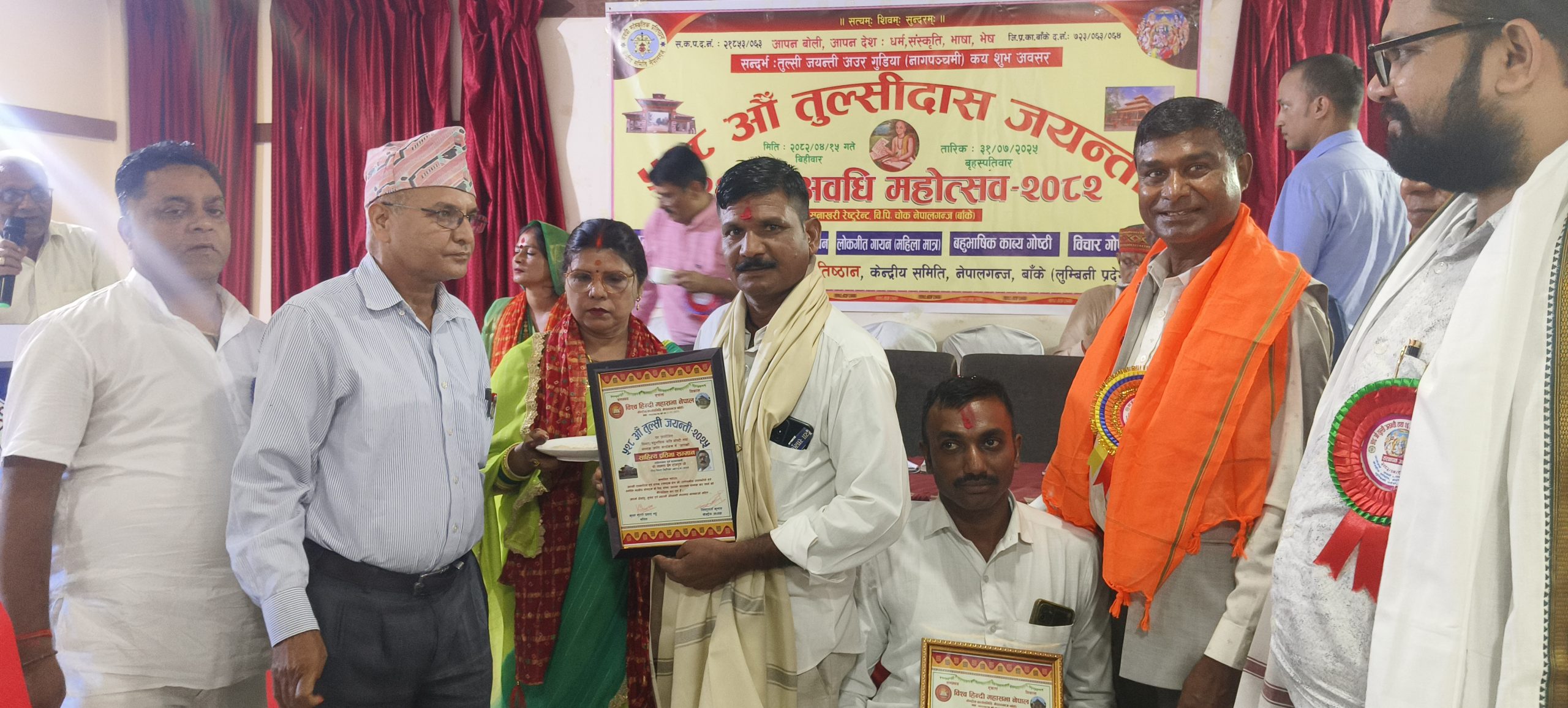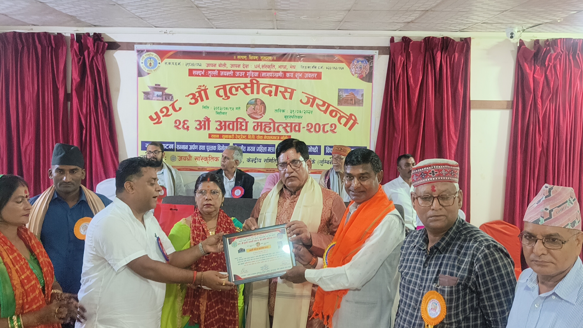 नेपालगन्ज, १५ श्रावण – अवधी सांस्कृतिक प्रतिष्ठानको आयोजनामा नेपालगन्जमा ५२८औँ गोस्वामी तुलसीदास जयन्ती विविध कार्यक्रम गरी भव्य रूपमा मनाईएको छ । प्रत्येक वर्ष झैस यसवर्ष पनि प्रतिष्ठानद्वारा सम्पन्न कार्यक्रममा अवधी भाषा, साहित्य र संस्कृति संरक्षणमा योगदान पु¥याउने व्यक्तिहरूलाई विशेष सम्मानका साथै गोश्वमी तुलसीदासको विभिन्न माध्यम कविता, गीत, सोहर, छंद लगायत बाचन गरी जीवनी स्मरण गरिएको थियो ।
