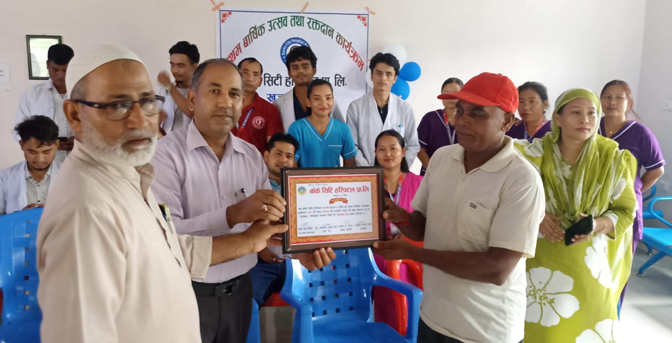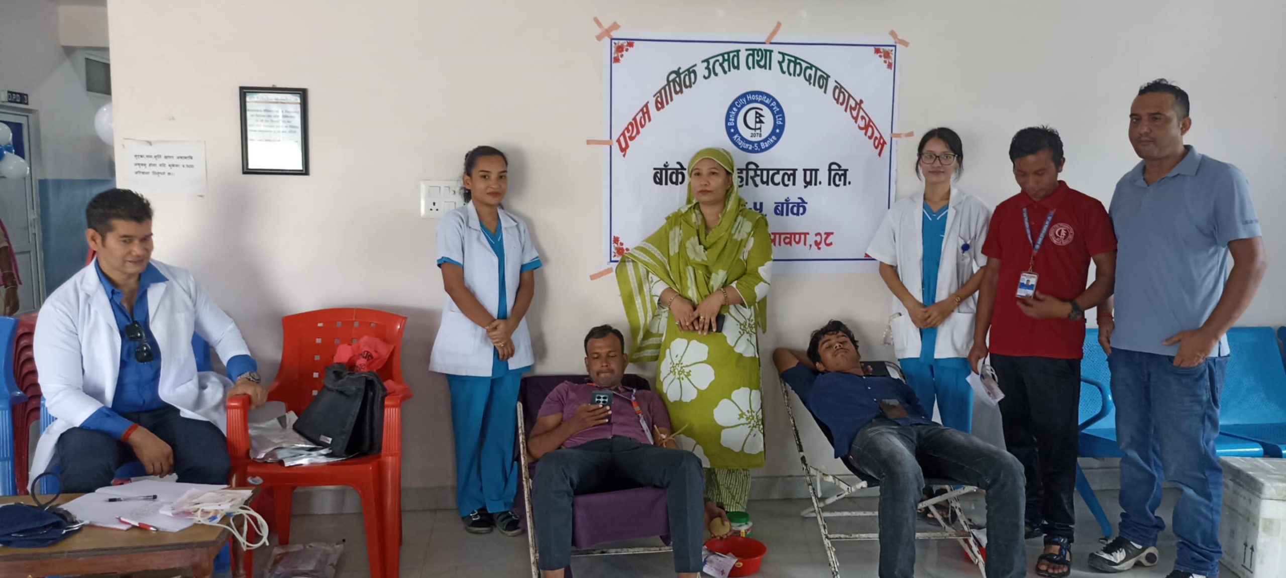 नेपालगन्ज, २८ श्रावण – बाँके सिटी हस्पिटल प्रा.लि.को प्रथम बार्षिकोत्सव तथा रक्तदान कार्यक्रम आज बुधबार सम्पन्न भएको ।