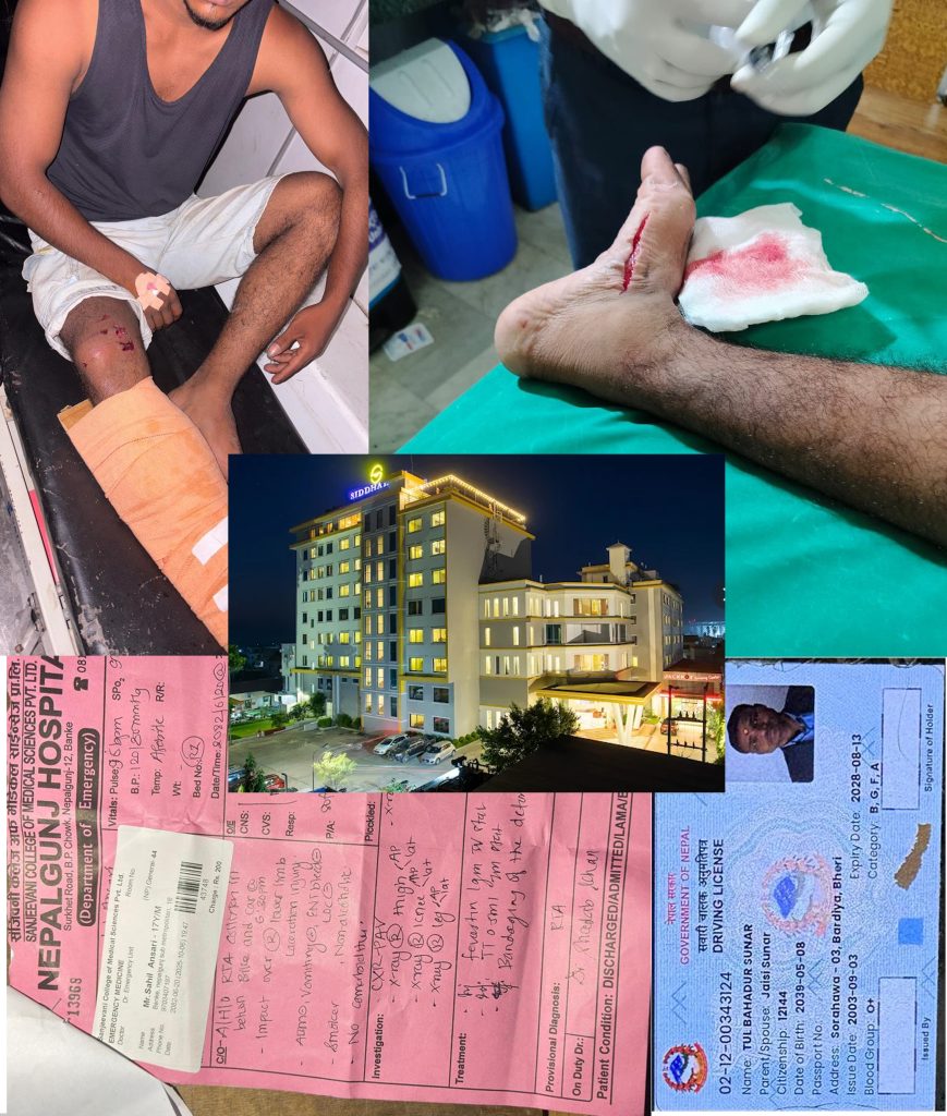 नेपालगन्ज, २२ असोज – सोमबार राती करीब ७ बजे ३० मिनेटमा नेपाल भारत सीमानाकामा दुई जना मोटरसाईकल रोकेर साथीसित गफ गरिरहेका थिए । उनीहरुलाई जानकारी थिएन के हुन्छ भनेर, त्यत्तिकैमा होटल सिद्धार्थमा रहेको क्यासिनोको गाडी आएर उनलाई ठक्कर दिन्छ । उनी दुर्घटना ग्रस्त भई सोही स्थानमा लडिरहेका हुन्छ । छेउछाउमा रहेको स्थानियहरु आउँछन् । भिड देखेर प्रहरी पनि पुग्छ केही बेर चर्काचर्की हुन्छ र प्रहरीले क्यासिनोको गाडी प्रहरी चौकीतर्फ लैजान्छ भने दुर्घटना ग्रस्त पीडितलाई नेपालगन्जमा रहेको भेरी अस्पतालमा उपचारको लागि पु¥याईन्छ ।