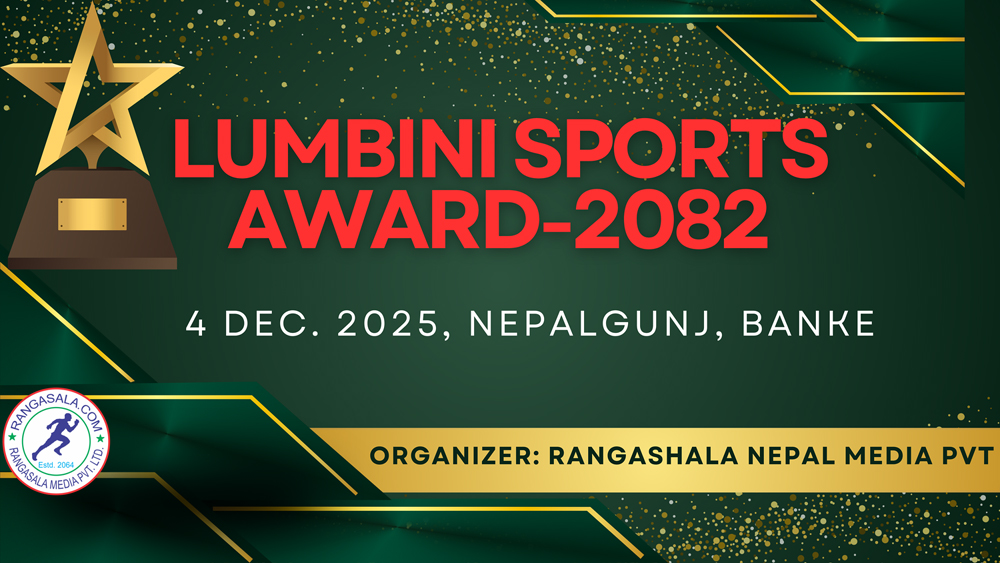 नेपालगन्ज, २४ असोज – खेलाडी र खेलकर्मीको योगदानलाई सम्मान गर्ने उद्देश्य सहित नेपालगन्जमा पहिलो पटक लुम्बिनी स्पोर्टस् अवार्ड हुने भएको छ । रंगशाला नेपाल मिडिया प्रालीले आयोजना गर्न लागेको लुम्बिनी स्पोर्टस् अवार्ड आगामी मंसिर १८ गते हुनेछ ।
