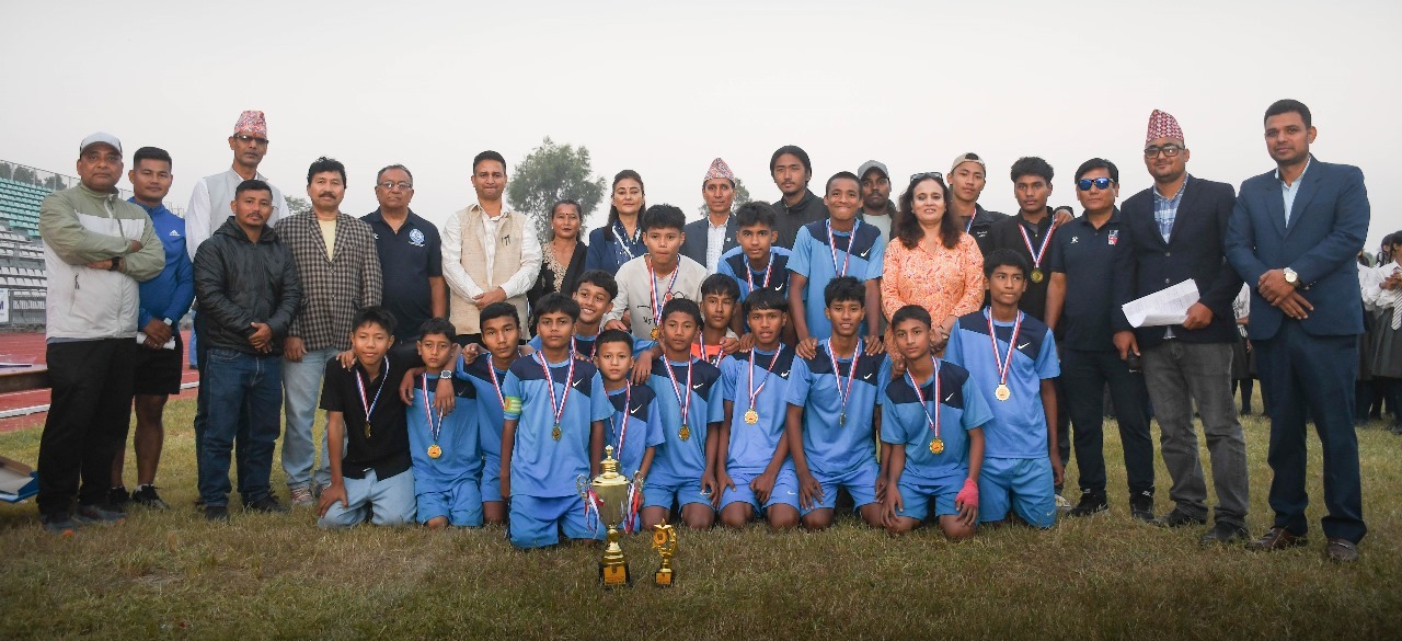 नेपालगन्ज, २८ कार्तिक – सिद्धार्थ विद्या सदन (छात्र) र नेपालगन्ज सेन्ट जेभियर्स स्कुल (छात्रा) एन्फा यु–१४ अन्तरविद्यालय फुटबल प्रतियोगिताको च्याम्पियन बनेका छन् । नेपालगन्ज रंगशालामा भएको फाइनल खेलमा सिद्धार्थ विद्या सदनले कोहलपुर बागेश्वरी इङलिस मिडियम स्कुलाई ३–१ ले पराजित गर्दै च्याम्पियन बनेको हो ।