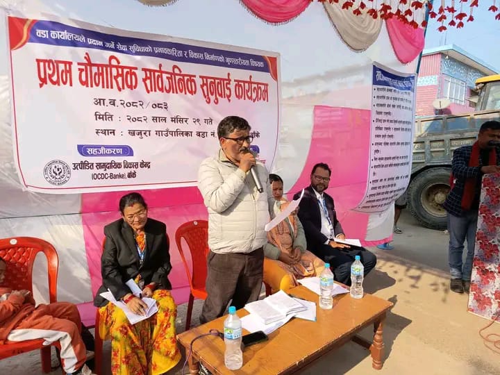 खजुरा, १ पाैष – खजुरा गाउँपालिका वडा नं. २ बाँकेको स्थानीयतहको सेवा प्रवाहमा सुशासन र जवाफदेहिता सम्बन्धी चौमासिक सार्वजनिक सुनुवाई कार्यक्रम सम्पन्न भएको छ। खजुरा गाउँपालिका वडा नं. २ सितापुरको आयोजना र उत्पीडित सामुदायिक विकास केन्द्र (ओसिडिसी) बाँकेको सहजीकरणमा चालू आर्थिक वर्ष २०८२/०८३ को प्रथम चाैमासिक सार्वजनिक सुनुवाई कार्यक्रमको आयोजना गरिएको थियो ।