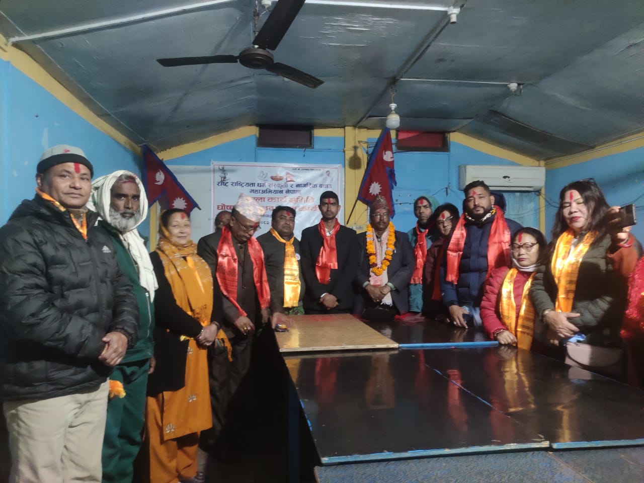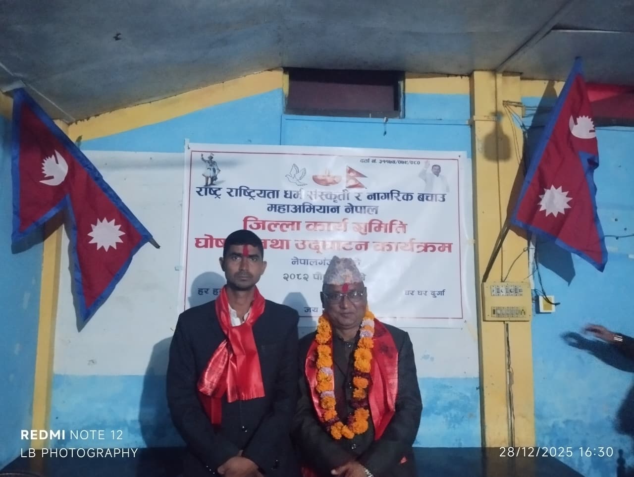 राष्ट्र, राष्ट्रियता, धर्म, संस्कृति र नागरिक बचाउ महा अभियान नेपाल, बाँके जिल्ला अध्यक्षमा लालबहादुर शाह, वरिष्ठ उपाध्यक्ष श्रीमति गीता सिंह, उपाध्यक्षद्वय गयाप्रसाद यादव, राजकुमार लामिछाने, कोषाध्यक्षमा श्रीमति नैता बमलाई चयन गरिएको छ ।