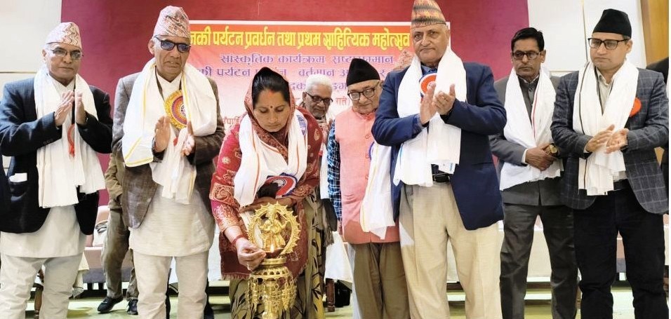 जानकी गाउँपालिका बाँके र भेरी साहित्य समाज केन्द्रिय समितिको संयुक्त आयोजनामा आयोजित “जानकी पर्यटन प्रवद्र्धन तथा प्रथम साहित्यिक महोत्सव २०८२” साँस्कृति कार्यक्रम, स्रष्टा सम्मान कार्यक्रमका बिशिष्ट अतिथि तथा जानकी गाउँपालिका उपाध्यक्ष रामप्यारी यादव, प्रा.डा. गोपालप्रसाद शर्मा अधिकारी र लुम्बिनी प्राविधिक विश्वविद्यालय सेवा आयोगका सदस्य प्रा.डा. कृष्णप्रसाद घिमिरेले पानसमा दीप प्रज्वलित गरी महोत्सवको उद्घाटन गर्नु भएको थियो ।