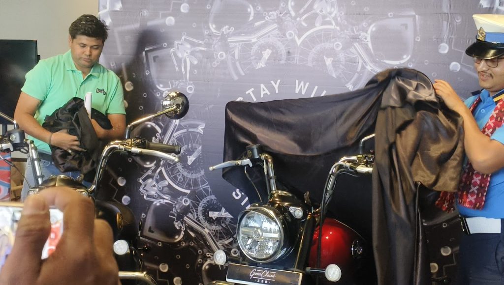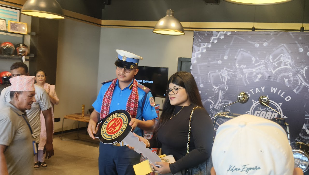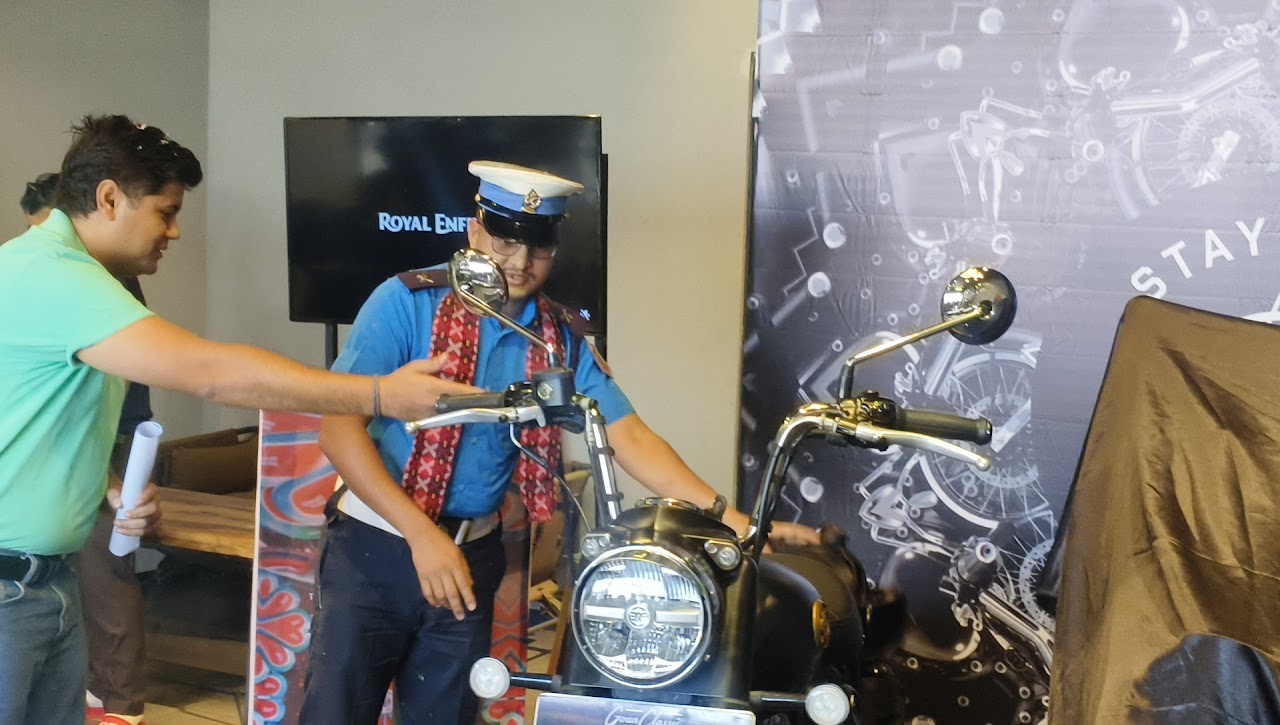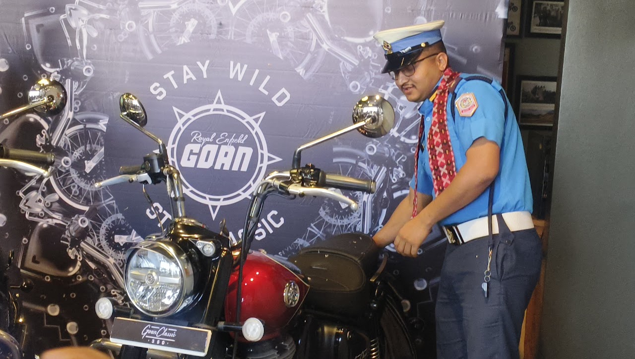 नेपालगन्ग, २ बैशाख – रोयल इनफिल्डको २०२६ गोवन क्लासिक ३५० मोडल आज बुधबार नेपालगन्ज शोरुममा जिल्ला ट्राफिक प्रमुख कनक शाहीद्वारा सार्वजनिक गरिएको छ ।