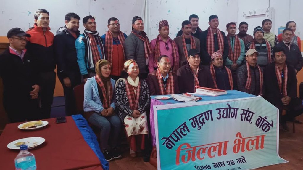 नेपालगन्ज, २४ माघ – विगत वर्षदेखि दुई खेमामा विभाजित भई विवादित रहँदै आएको नेपाल मुद्रण उधोग संघ बाँकेले आज विनोद पौडेलको अध्यक्षतामा नयाँ नेतृत्व पाएको छ ।
