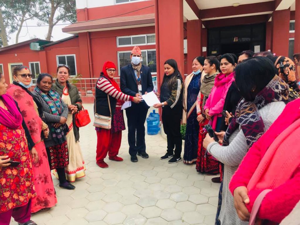 अन्तरपाटी महिल संजाल बाँकेका सचिव अछरी पोखरेलद्वारा उक्त ज्ञापन पत्र पढेर सुनाइयो भने अध्यक्ष अम्बीका काफ्लेद्वारा सहायक प्रमुख जिल्ला अधिकारी दिर्गराज उपाध्यायलाइ हस्तान्तरण गरीयो ।