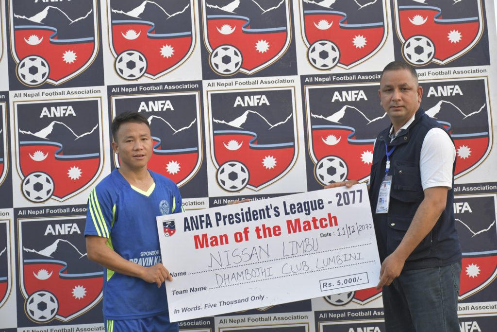 धादिङका प्रशिक्षक र कप्तान भने पोस्ट म्याच कन्फ्रेन्समा उपस्थित भएन । धम्बोझीको जितमा बुधबार निशान लिम्बुले दुबै गोल गरेका थिए । उनले खेलको दुइ मिनेटमै गोल गरेर टोलीलाई अग्रता दिलाएका थिए । त्यसपछि उनले ६१औं मिनेटमा टोलीका लागी दोस्रो गोल गरे । धादिङको तर्फबाट विजय भुजेलले १६औं मिनेटमा गोल गरेका थिए ।