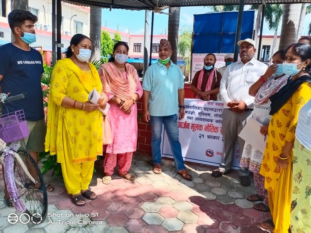 यसैगरी ४९ जनालाई साईकाल सहयोग गरिएको छ । दलित, सिमान्तकृत, मधेसी, मुस्लिम, अल्पसंख्यक समुदायका महिलाहरुलाई सामग्री सहयोग गरेको छ । गत आवमा नगर कार्यपालिका सदस्यहरुले सञ्चालन गर्ने कार्यक्रमका लागि १२ लाख रुपियाँको कार्यक्रम विनियोजन गरिएकोमा कोभिडका कारण आयआर्जन मुलक कार्यक्रम सञ्चालन हुन नसकेपछि यसअघि तालिम प्राप्त महिलाहरुलाई सिलाईकटाई तथा इन्टरलक मेसिन उपलब्ध गराइएको हो ।