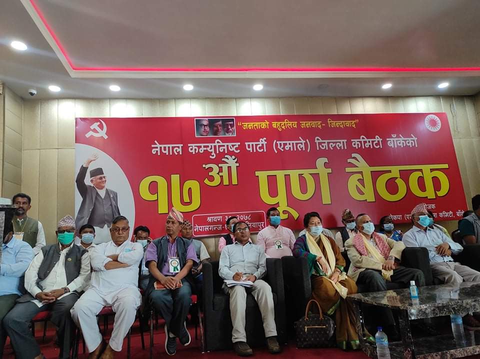 नेकपा एमाले बाँके जिल्ला कमिटिको १७ औं बैठकमा सुर्य ढकाल अध्यक्ष र नेकपा स्थाइ कमिटि सदस्य तथा प्रमुख अथिति लुम्बिनी प्रदेशका पुर्व मुख्य मन्त्रि शंकर पोखरेल, अनेमसंघका केन्द्रिय सचिव सुजिता शाक्य लगायतको सहभागीता रहेको थियो । बैठकमा ६वटा समुह बनाएर पार्टीका गतिविधि र विधान संशोधनमा सुझाव संकलन गरीएको थियो ।
